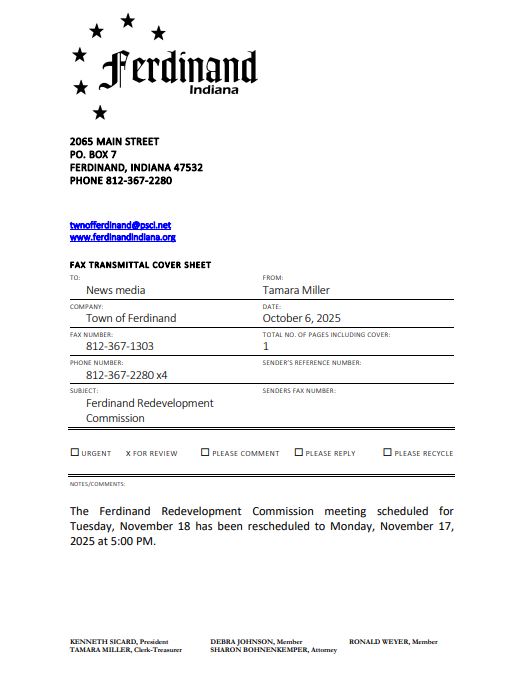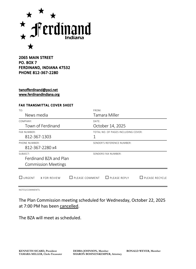 If you live in the Ferdinand Township and the Town of Ferdinand and want a rewarding feeling of serving your community we are accepting applications now until October 31, 2025. Pick up an application at the town hall Monday through Friday 7:30-4:30 or by contacting any firefighters.